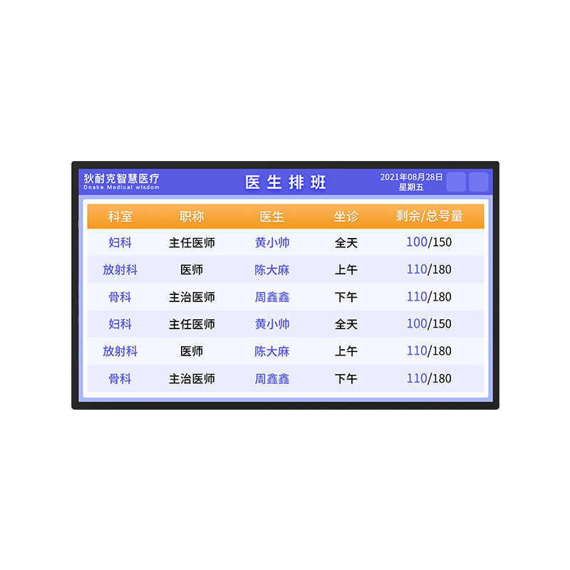 2)部署液晶一體機,顯示專家排班信息,讓病患選擇合適 的專家診室就診。