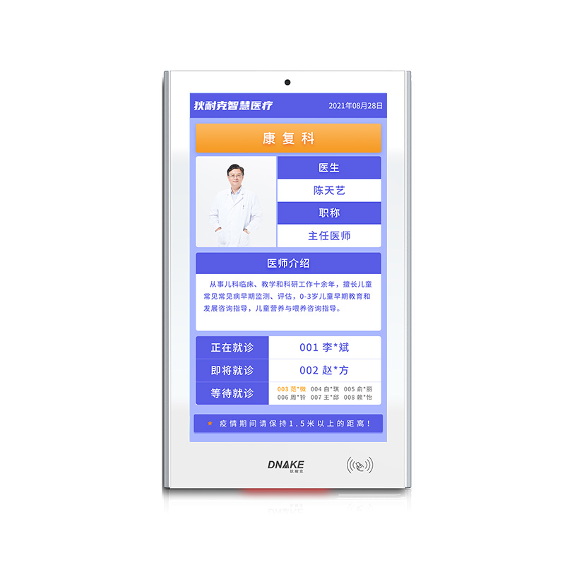 每個診室部署一臺液晶顯示終端,顯示出診專家(出診專科、健康宣教等)信息,診室叫號時全屏(或分屏)顯示需就診患者信息。
