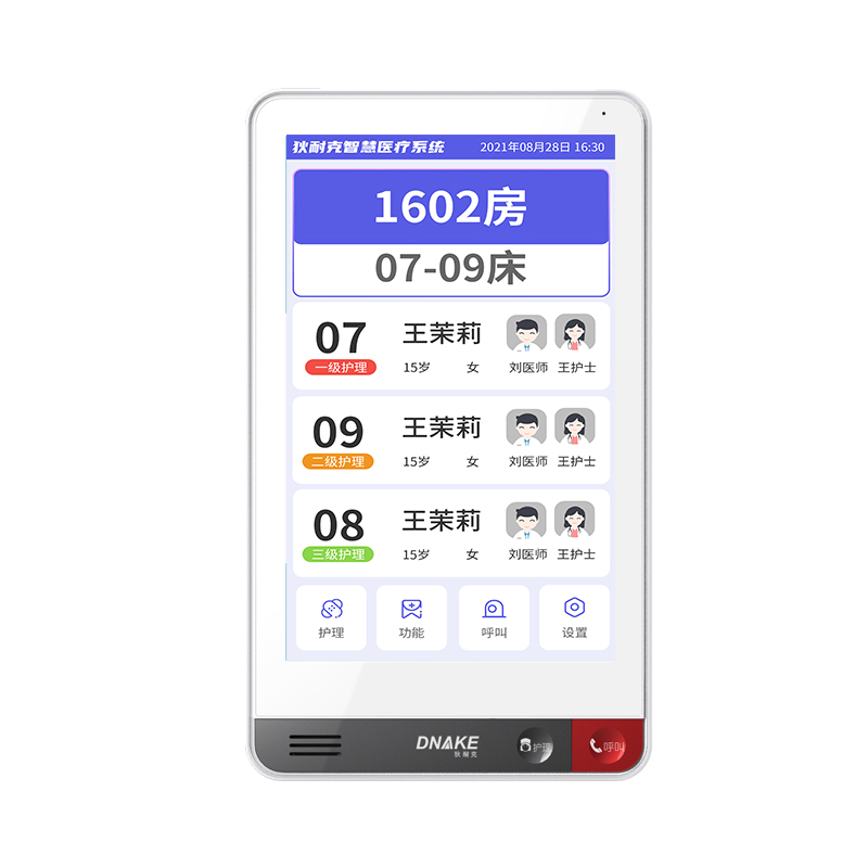設(shè)置在病房門口的終端設(shè)備,主要用于顯示病房相關(guān)信息,內(nèi)置簡易醫(yī)護工作站,支持病房床位一覽、患者動態(tài)跟蹤、呼叫對講、增援求救等多種呼叫類型,信息齊全,及時響應(yīng)醫(yī)護需求,實現(xiàn)智能化醫(yī)護管理。