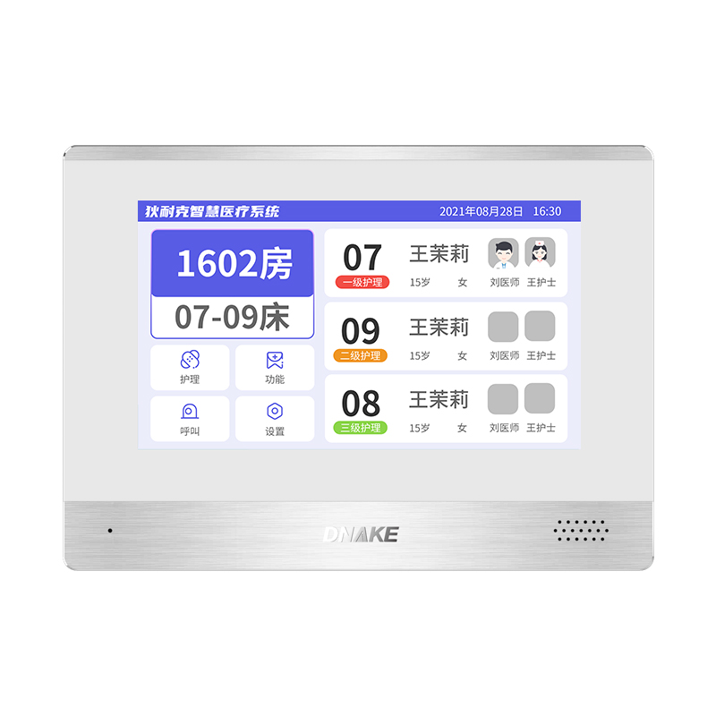 創(chuàng)新設(shè)置在病房門口的終端設(shè)備,主要用于顯示病房相關(guān)信息,內(nèi)置簡易醫(yī)護工作站,支持病房床位一覽、患者動態(tài)跟蹤、呼叫對講、增援求救等多種呼叫類型,信息齊全,及時響應(yīng)醫(yī)護需求,實現(xiàn)智能化醫(yī)護管理。
